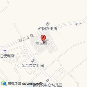 氡泉雅苑位于雅阳大道与云锦路交叉口南40米(金苹果幼儿园)幼儿园西南方向144.881米的位置。
