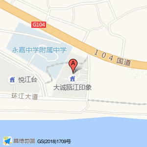 大诚瓯江印象位于京福线(永嘉中燃能源有限公司)公司东北方向549.942米的位置。