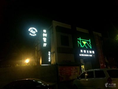 丼树文创园位于乐成街道环城西路100号(木言铁板烧)中餐厅西方向119.342米的位置。