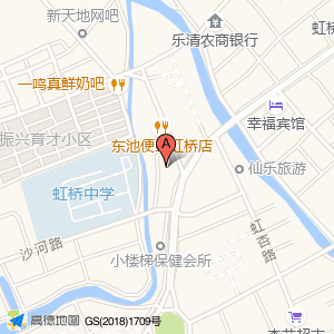 振兴南苑位于虹桥镇虹杏路16号(乐清市虹桥中心卫生院发热门诊)医疗保健服务场所东方向121.22米的位置。