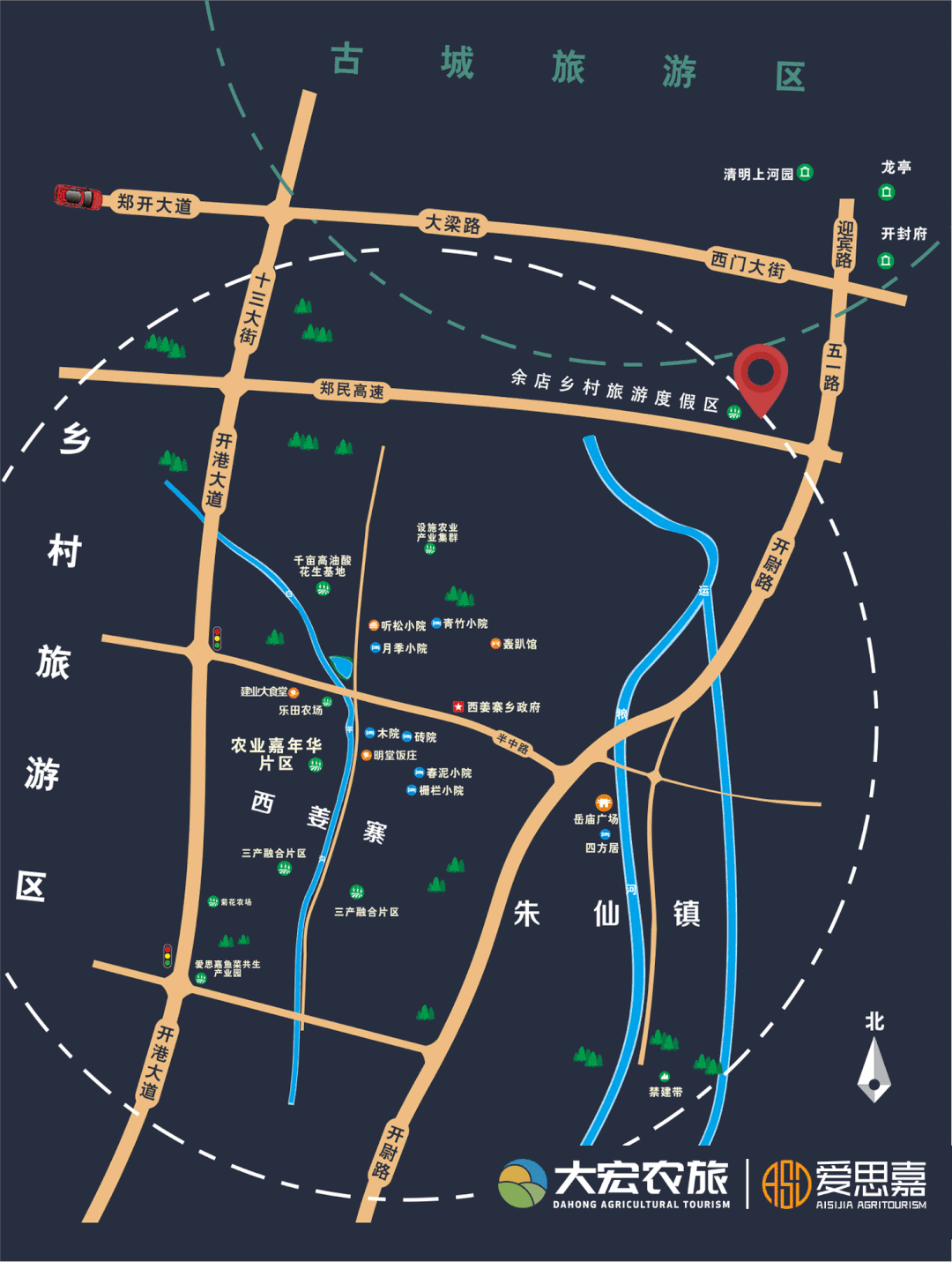 沿虹南线途径虹南大道、飞虹南路向西北行驶3.6千米左转