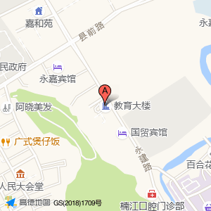 教育大楼位于永建路与县前路交叉口东南160米(国美电器(永建路店))国美西北方向56.5998米的位置。