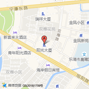 阳光大厦(旭阳路)位于乐成街道旭阳路与双雁路交叉口银祥大厦14-21层(温州乐清颐居酒店)宾馆酒店西南方向130.787米的位置。