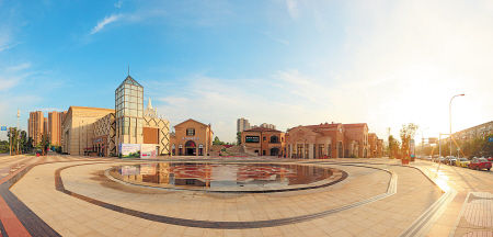 ➤沿商贸路向东步行199米右转