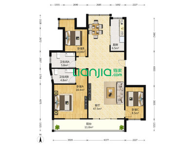 ➤向东南步行52米到达目的地