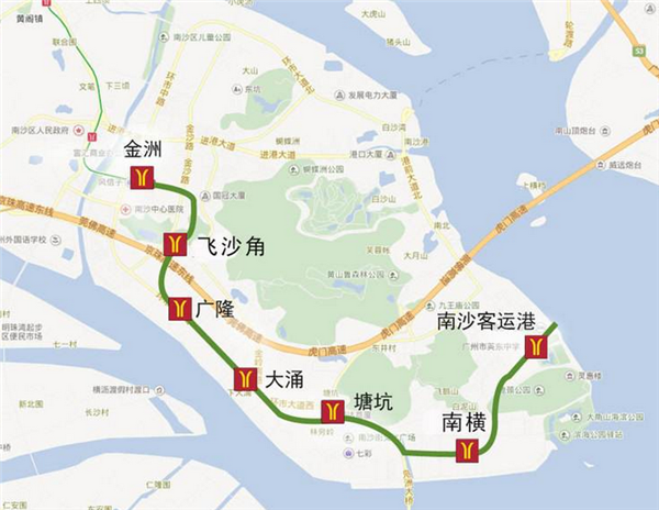 ⓞ沿沙洲路向东骑行621米直行