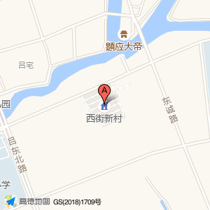 西街新邨位于东诚路与临河路交叉口北120米(顕应大帝)旅游景点北方向222.558米的位置。