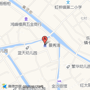 景秀湾位于虹桥镇四村西沙路1号(蓝天幼儿园)幼儿园西方向123.978米的位置。
