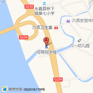 经商写字楼位于中心街与104国道交叉口东260米(永嘉县桥下镇六岙村村民委员会)乡镇以下级政府及事业单位东方向264.3米的位置。