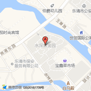 水深紫金园位于乐成镇玉箫路80至93号(世贸国际公寓)住宅小区东方向266.216米的位置。