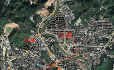 ➤沿潘溪路向东步行981米向右前方行走