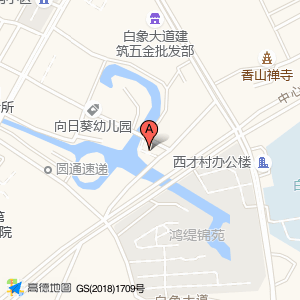 广场花苑位于白象大道420-424号(香山禅寺)寺庙道观东北方向308.911米的位置。