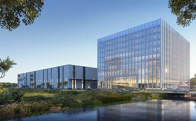 沿钱江路向东北行驶556米右转