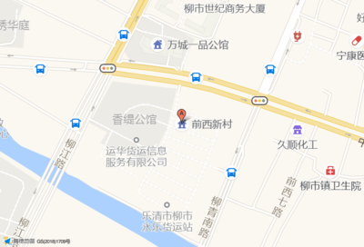 前西新村位于柳市世纪商务大厦(柳市世纪商务大厦(北门))临街院门北方向360.371米的位置。