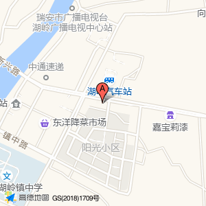人社服务合作网点(瑞安农商银行湖岭支行阳光分理处)>>位置示意图 |