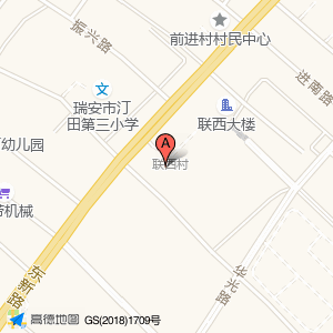 瑞安市汀田街道联西村退役军人服务站位于进南路与东新路交叉口西60米(中共前进村支部委员会)乡镇以下级政府及事业单位北方向303.392米的位置。