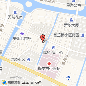 瑞安市中医院占地面积约:21179㎡和浙江省温州市瑞安市安阳街道安康路354号隆桥·清上苑(安阳街道安康路)相距 ⇄ 37.4045m