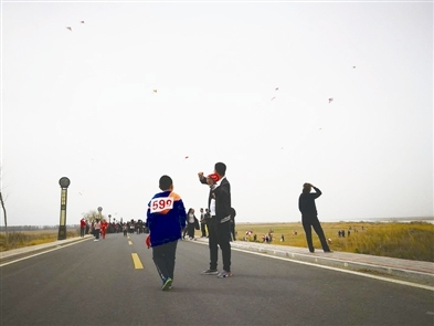 ➤向东北步行923米向左前方行走