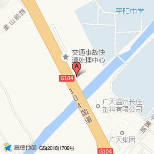 平阳县交通工程建设中心位于皇岙村104国道边(瑞升汽车园)(平阳汽车报废中心)汽车服务相关北方向119.432米的位置。