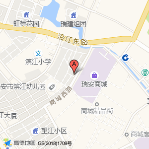 瑞安市侨联位于商城精品街1号(中国建设银行(瑞安滨江支行))中国建设银行东方向231.28米的位置。