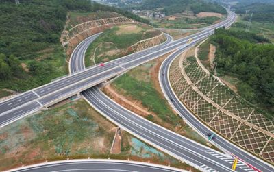 沿牛驮垄隧道途径中林大桥向西行驶2.2千米直行进入隧道