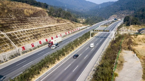 沿S34龙丽温高速向西行驶2.8千米直行进入隧道
