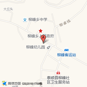 村民中心位于709县道与泰福路交叉口西北280米(柳峰乡中学)中学西北方向222.331米的位置。