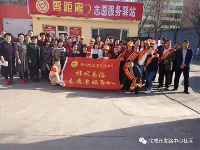 罗阳镇北城社区居民中心位于北大街与人民路交叉口北20米(好美尊尚(城北店))医疗保健服务场所东北方向179.584米的位置。