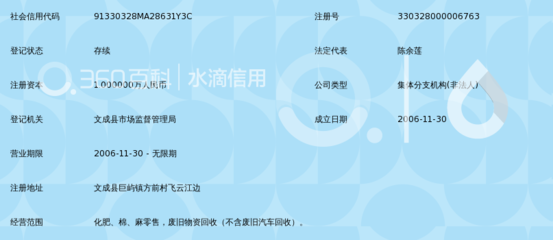 | 所属类型:社会团体相关 | 地址:浙江省温州市文成县珊溪镇沿溪东路(新建东路6号) |