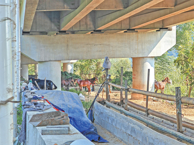 ⓞ沿过境公路向西北骑行180米直行