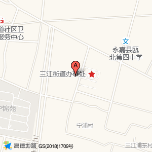 三江商务区政务服务中心位于宁浦村北大街(彩印包装厂二楼)(永嘉县市场监督管理局三江所)乡镇级政府及事业单位西方向339.758米的位置。