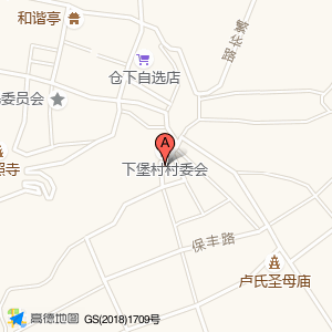 下堡村综治工作中心位于仓西路与仓兴西路交叉口东南20米(仓下村村民委员会)乡镇以下级政府及事业单位西北方向243.324米的位置。