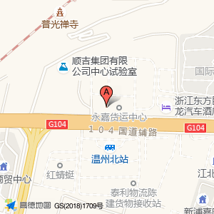 永嘉县五洲汽车综合性能检测站位于瓯北镇104国道泰利物流集团西侧150米(永嘉县五洲汽车综合性能检测站)验车场Center方向0米的位置。