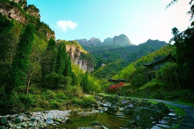 ➤沿竹沿路向北步行909米向左前方行走