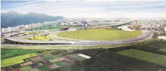 沿七都大桥途径104国道向东北行驶2.0千米靠右