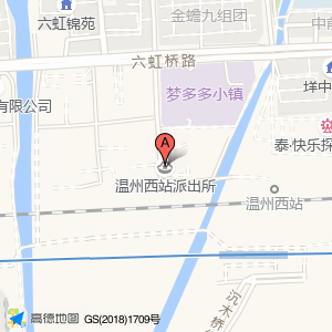 温州西站派出所位于新桥六虹桥路1189号(梦多多小镇)普通商场|体育休闲服务场所|生活服务;生活服务场所;生活服务场所东北方向157.552米的位置。