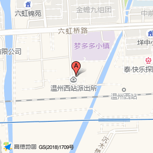 杭州铁路公安处(金温公安分处)位于新桥街道六虹桥路1189号梦多多小镇A幢3层A3-02(温州莉莉拉丁舞梦多多校区)培训机构东北方向158.029米的位置。