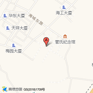 东成村党群服务中心位于海城街道邱宅村梅园路20号(海城农家乐)餐饮相关西方向266.709米的位置。