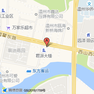 君派大楼占地面积约:1488㎡和温州市瓯海区温瞿东路与乐尔路交叉口东南40米相距 ⇄ 0m