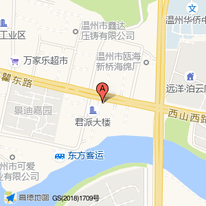 君派大楼占地面积约:1488㎡和温州市瓯海区温瞿东路与乐尔路交叉口东南40米相距 ⇄ 7.78256m