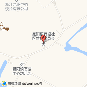 昆阳镇石塘社区管理委员会位于昆江线石塘社区梅花鹿养殖公司内(浙江光正中药饮片有限公司)工厂西北方向372.849米的位置。
