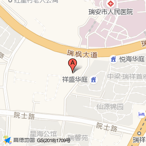 祥盛华庭占地面积约:11290㎡和温州市瑞安市瑞枫大道123号相距 ⇄ 49.0208m