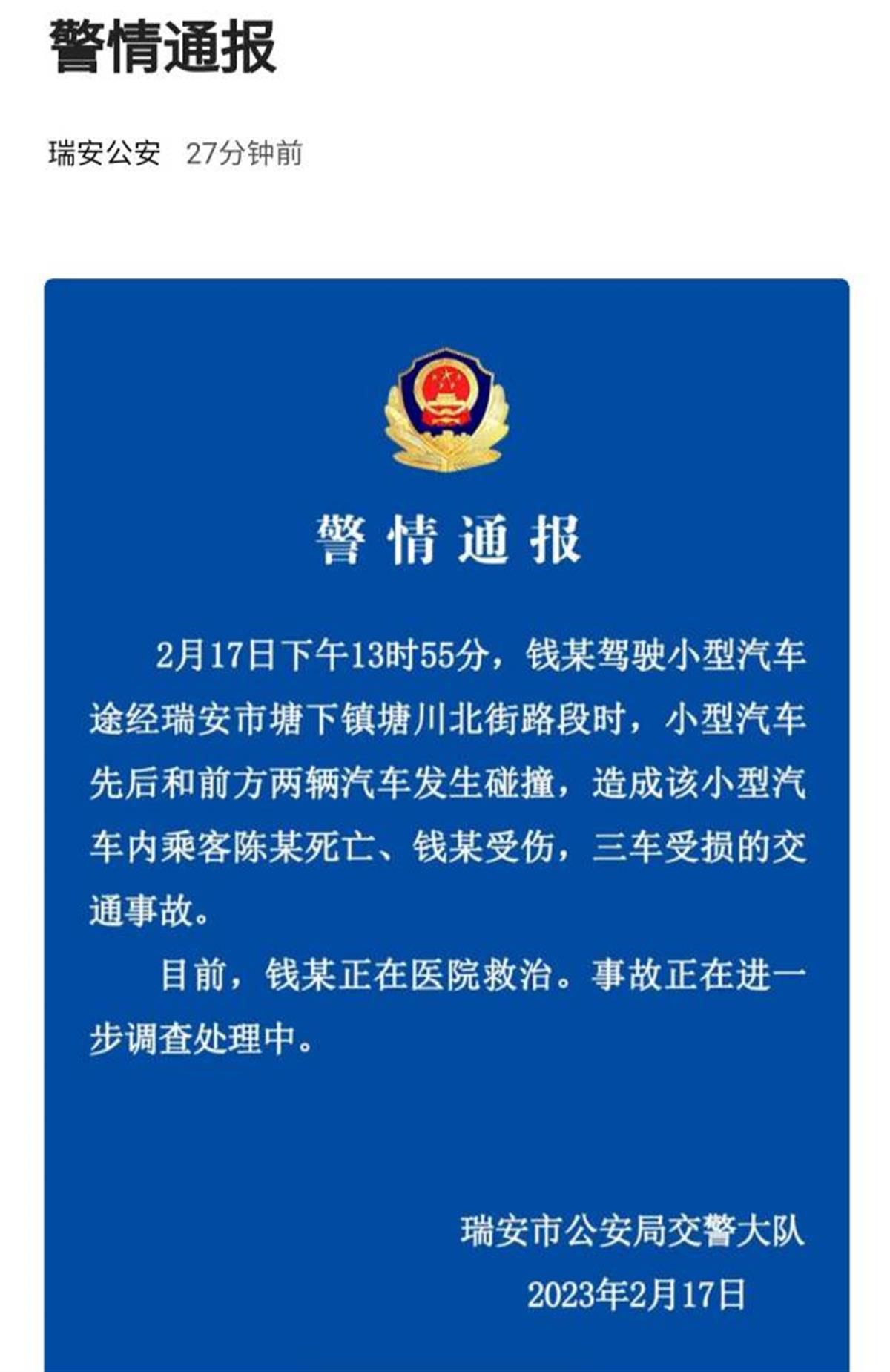 感谢司芳芳、苦柴、堵店蛳提供瑞安市公安局交通警察大队事故处理中队基本资料,感谢从氪、昝帩黇整理上传瑞安市公安局交通警察大队事故处理中队图片