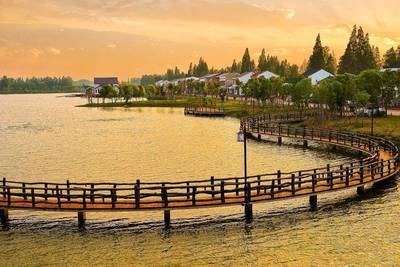 ⓞ沿塘下大道向南骑行2351米左转