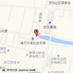 塘下沙渎农贸市场占地面积约:742㎡和温州市瑞安市益民路145号村委会相距 ⇄ 15.1522m