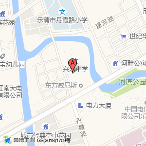 兴乐中学办公楼位于乐成街道丹霞路168号(电力大厦)商务写字楼南方向141.362米的位置。