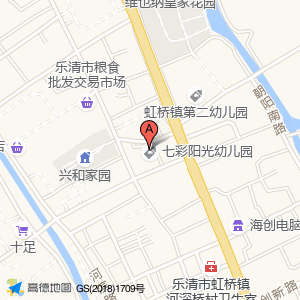 七彩阳光幼儿园位于虹桥镇虹南路356号(兴和家园)住宅区西方向136.347米的位置。
