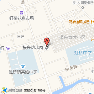 振兴幼儿园位于虹桥振兴西路218弄16号(东篱教育)培训机构西北方向170.354米的位置。