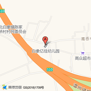 白象亿佳幼儿园位于S10温州绕城高速与大桥北互通交叉口西北380米(陈家桥村居民中心)乡镇以下级政府及事业单位西方向381.466米的位置。
