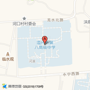 温州市第八高级中学位于瑶溪镇河口村(温州市第八高级中学)中学Center方向0米的位置。